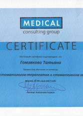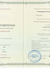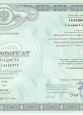 2017 г. Сертификат специалиста «стоматология терапевтическая»