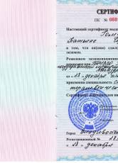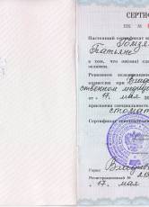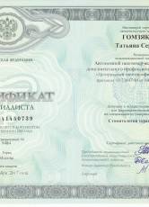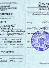 2006 г. Сертификат по присвоении специальности «Стоматология»