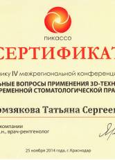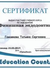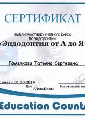 2014 г. Сертификат «Эндодонтия от А до Я»
