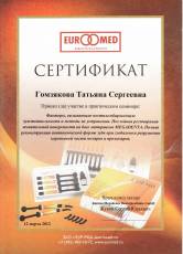 2012 г. Сертификат EUROOMED участие в семинаре