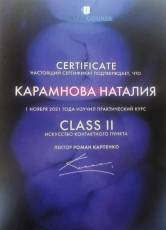2021 Сертификат DENTALCOURSE о прохождение обучение на практическом курсе “CLASS II искусство контактного пункта”