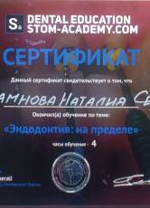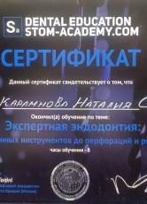 2008 Сертификат от DENTAL EDUCATION “Экспертная эндодонтия: от сломанных инструментов до перфораций и резорбций”
