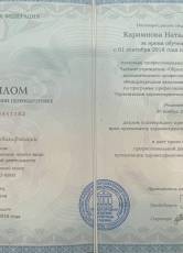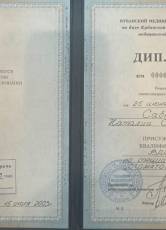 2003 Диплом от Кубанского медицинского института о присуждение квалификации “Врач - стоматолог”