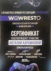 2022 Сертификат об участии на 3-тем конгресс прямой реставрации в Краснодаре