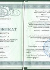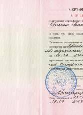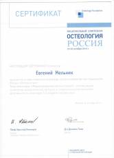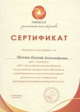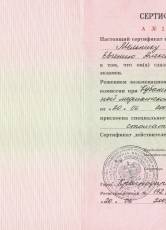 2011 г. Сертификат прошел обучение по применению программного обеспечения для интерпретации результатов трёхмерной диагностики.