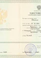 2007 г. Повышение квалификации по программе «Экспертиза временной нетрудоспособности» Кубанская государственная медицинская академия