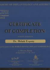 2013 г. Сертификат Nobel Biocare World – участие в международной образовательно конференции по имплантологи и эстетической стоматологии.