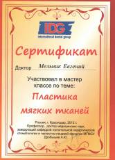 2012 г. Сертификат IDG участвовал в мастер классе Пластика мягких тканей