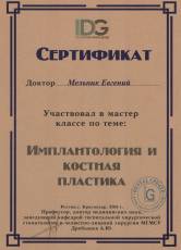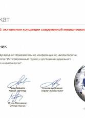 2011 г. Сертификат IDG, участвовал в мастер классе по Имплантологи и косной пластики