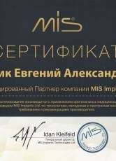 2018 г. Сертификат MIS имплантологический форум – 2018