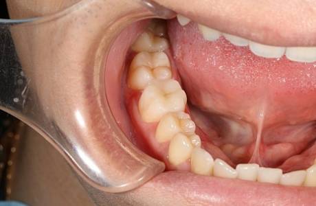 Пациент обратился с жалобами на боли от холодного в шестом зубе нижней челюсти справа. После обработки кариозной полости было выявлено разрушение зуба на 60%.